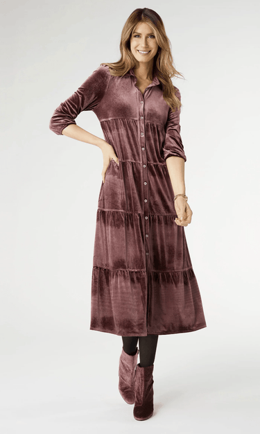 Get ready to sweep them off their feet in the Romance Imagined Dress! Made from luxurious velour, this dress is so soft you'll never want to take it off. The button front detail adds a sophisticated touch, while the flowy silhouette creates a romantic vibe.