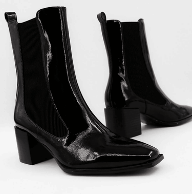 ZELLA is a modern update for '60s Chelsea boots. Featuring elasticated side panels and pull straps for an easy slip-on, these boots are set on a stacked high heel. Wear yours with cropped dresses or skirts.