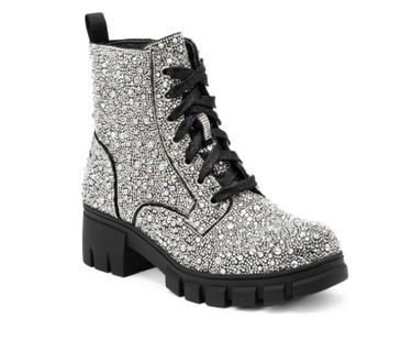 Rock the stage in Corky's Clear Rhinestone Mood Boots. With a statement-making silhouette, these combat boots feature a side zipper detail for ease of entry. Covered in clear rhinestones for an eye-catching look, the boots fit true to size and provide an edgy and fashionable look.