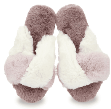 Our Rita Slippers combine classic Hollywood starlet fashion with high quality comfort for a pair of slippers you'll always want to wear. This multi-tonal open toe pair has a memory foam insole and is covered in plush faux fur in a looped halter design that gives visual intrigue as well as a perfect finishing touch.