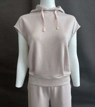 Stay cozy and stylish with our Air Essential Sleeveless Hoodie in a soft, light pink hue. Made from a luxurious blend of 48% modal, 48% polyester, and 4% spandex, this top is incredibly soft, lightweight, and perfect for layering or wearing on its own. The sleeveless design adds a modern twist, while the hood provides a touch of laid-back comfort. Whether you’re lounging at home or stepping out for a casual day, this versatile piece is a must-have addition to your wardrobe!