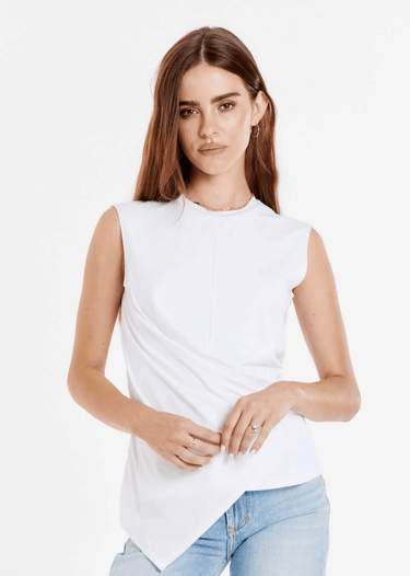 CLEARANCE- Freya White Sleeveless Asymmetrical Drape Wrap Top