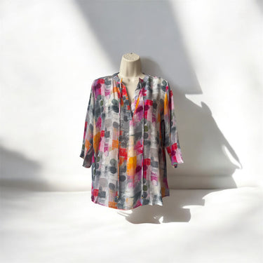 A beautiful silhouette created by a V-neck, and ornate tassels makes this style our top selling blouse. This top is effortlessly stunning, with splendid print pattern splayed across the flowy sleeves and high-low hem. Pair it with fitted denim jeans, strappy sandals or heels, and gold or silver jewelry for a gorgeous ensemble that you'll want to wear all year long.