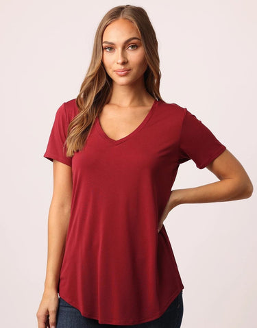 CLEARANCE - Megan V-Neck Tee Rhubarb