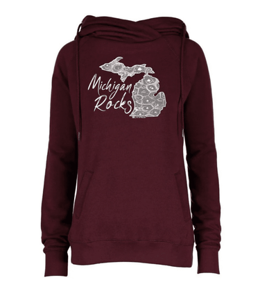 "Michigan Rocks Petoskey Stone" Women's Fleece Funnel Neck Pullover Hoodie