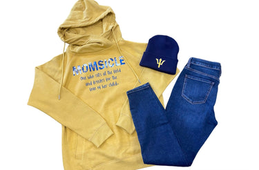 Introducing our Momsicle Gold Funnel Neck Hoodie with Blue Flowers – a cozy and stylish way to honor the amazing moms who brave the elements for their children's love of sports. This hoodie features a warm and trendy gold funnel neck design, perfect for staying comfortable during those chilly game days.
