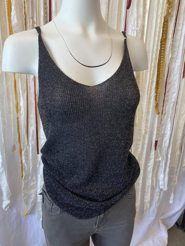 Fun, black shimmery tank top with thin straps.