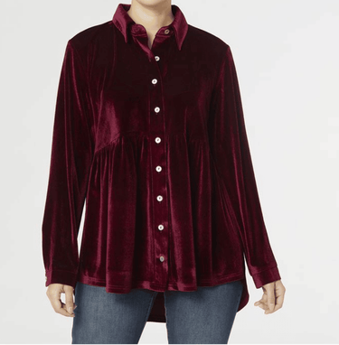 CLEARANCE Soiree Velour Button Front Top - Burgundy