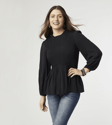 CLEARANCE - Valen Smocked Top with Ruffle Collar- Black