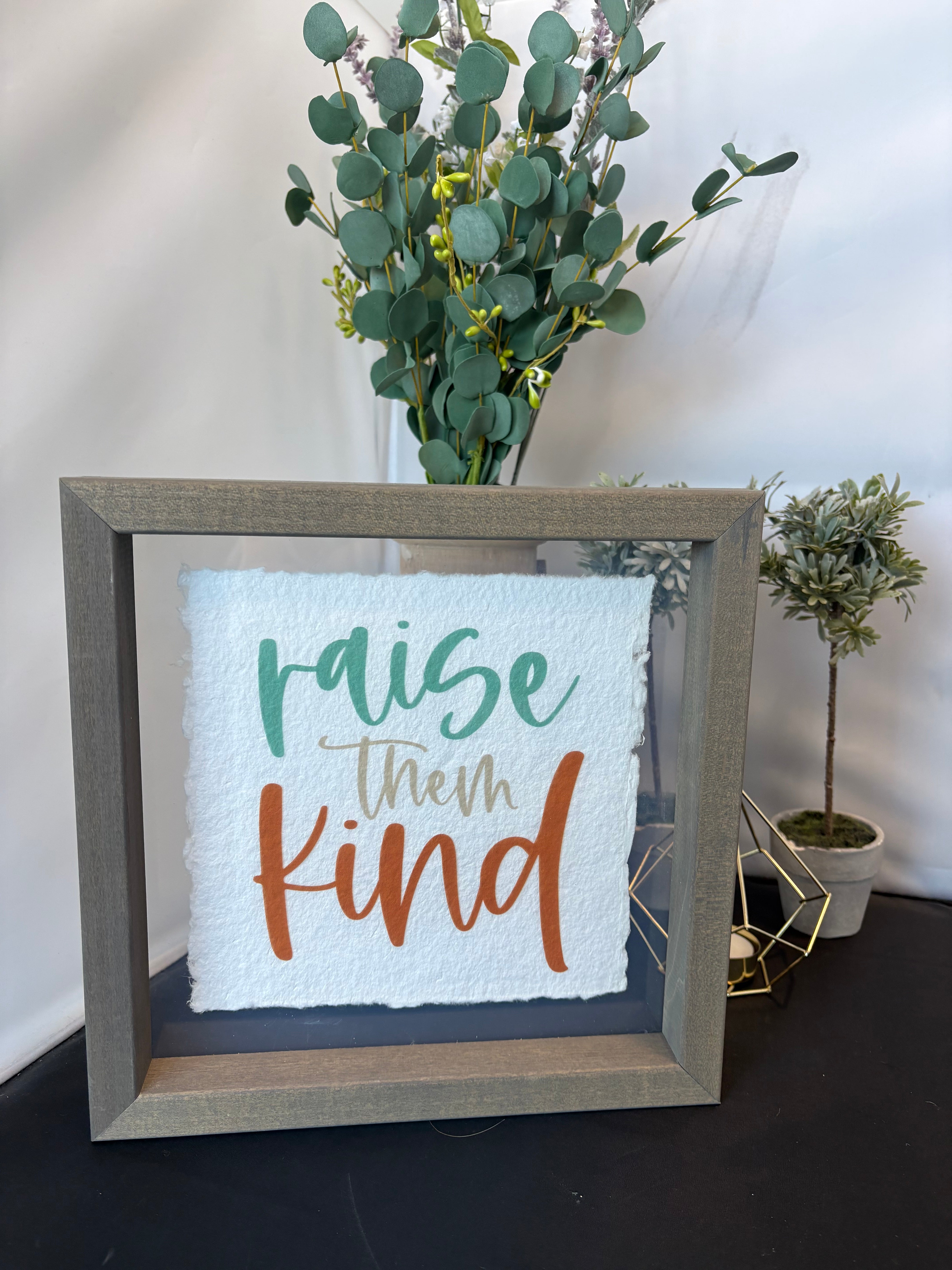 Gray framed shadow box table top / wall decor with different quotes. 5 different designs available.