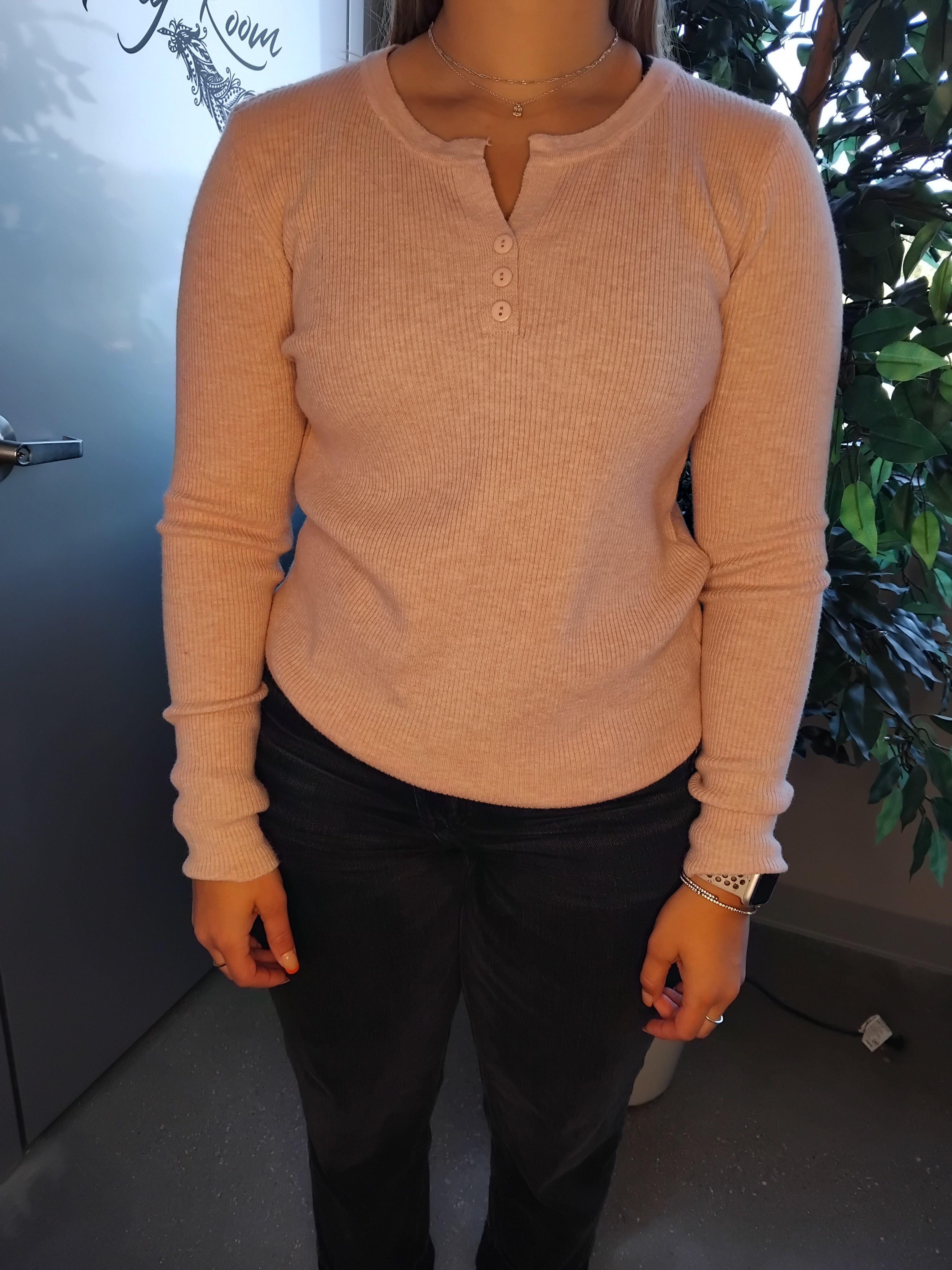 Say hello to the new Kym Soft Henley Top with Buttons. This super soft must-have essential is lightweight and features ribbed knit fabric and button details. Materials: Acrylic/Polyester/Nylon.
