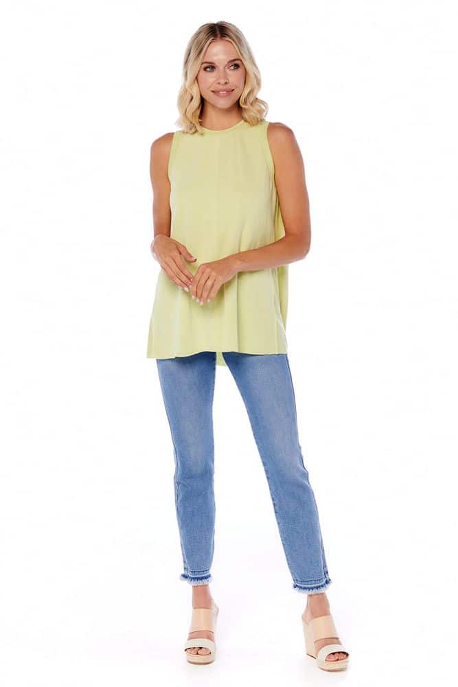 The Dempsey Swing tank is an essential tank for this season. The tank has ribbed features on the side panels, sleeve binding and neckline. The top is rayon blend and features a fun swing hem. The top measures approximately 25 1/2" from shoulder to hem on size small.