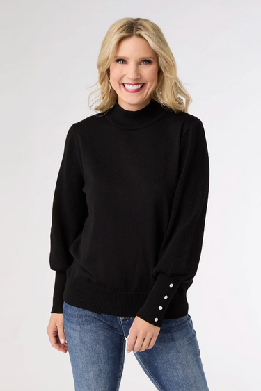 Skylah Mock Neck Sweater with Pearl Button Cuff