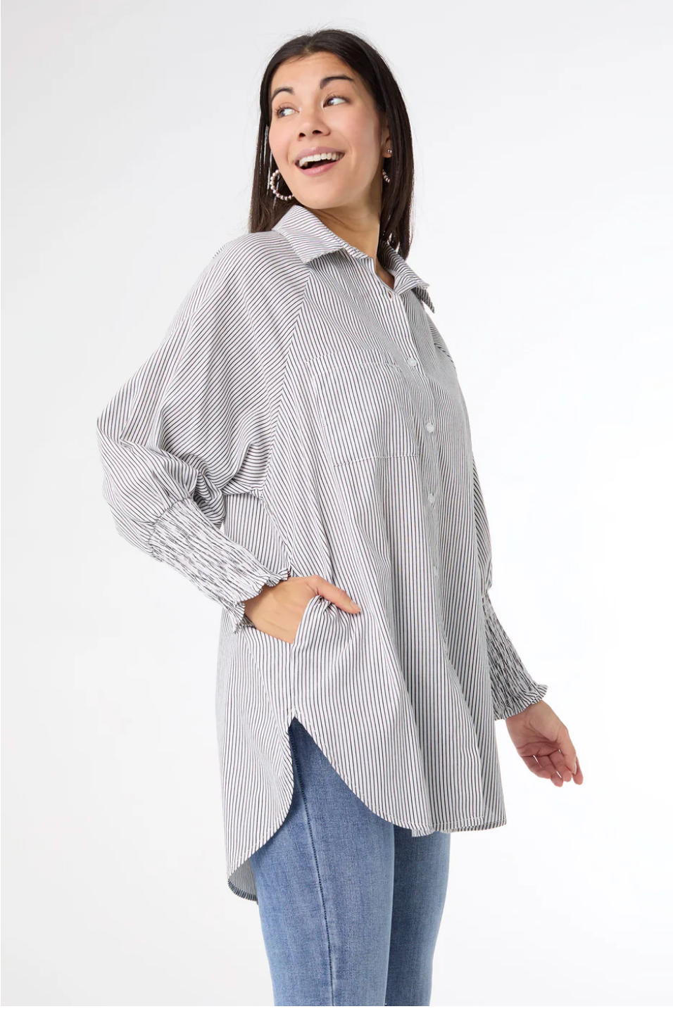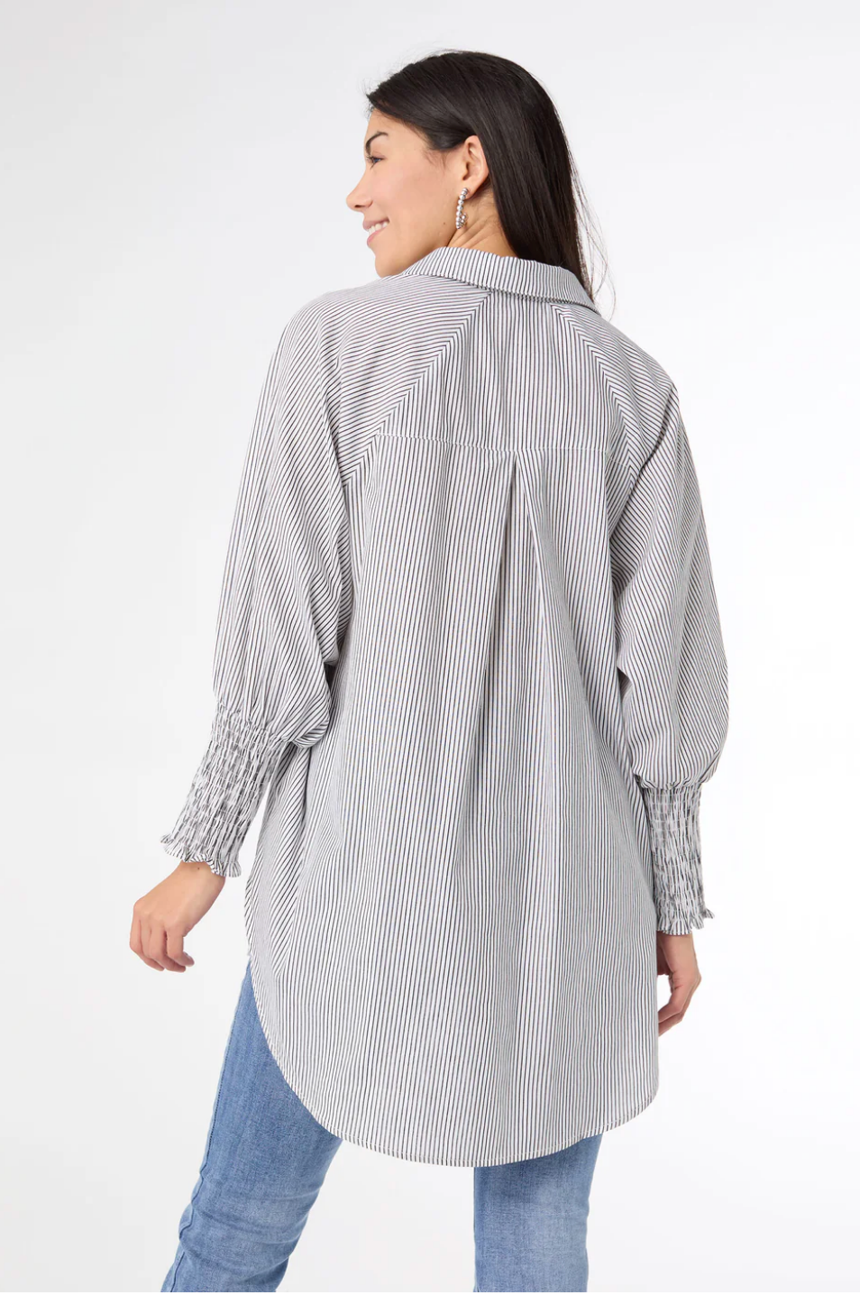 Tianna Striped Tunic Top with Cinched Sleeve