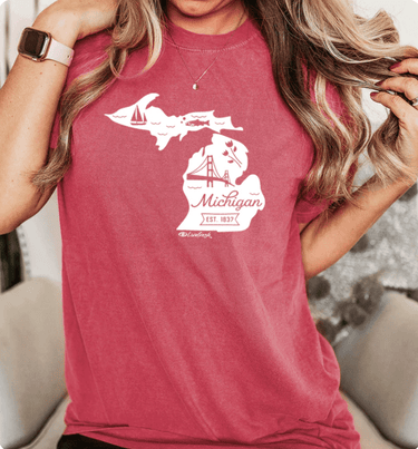 Vintage Michigan Relaxed Fit Stonewashed T-Shirt - Crimson