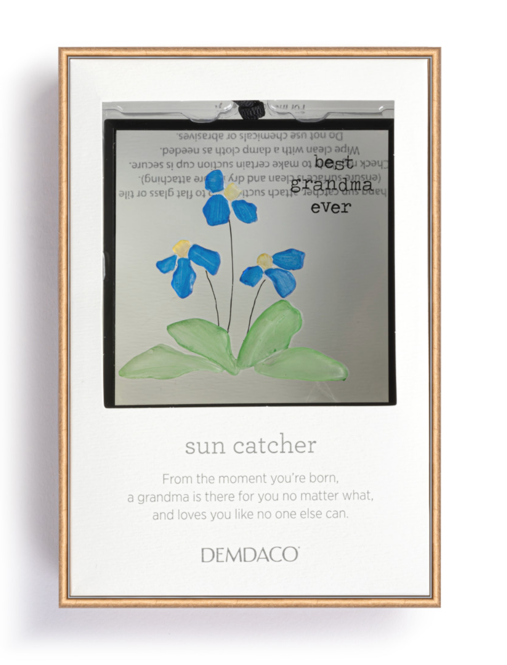 Artist Sharon Nowlan's art is reflective of the beautiful land and seascapes of Nova Scotia, where she grew up drawing, painting and creating in a variety of media. Her Best Grandma Ever Suncatcher - 3x3in transforms a mix of composite pebbles and other materials into an inspirational design that captures the joy and emotional experience of relationships.