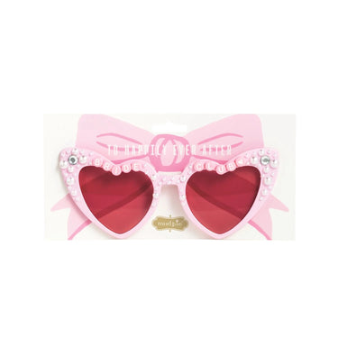 Stylish white heart shapes sunglasses featuring embellishments like rhinestones and letter beads. Perfect for bridal showers, bachelorettes, and honeymoons. These "Bride" sunglasses feature a 6-inch frame width, designed to be a fashionable, glitzy accessory for the bride-to-be.