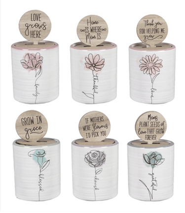 Ceramic Planter w/ Wood Flower Stake