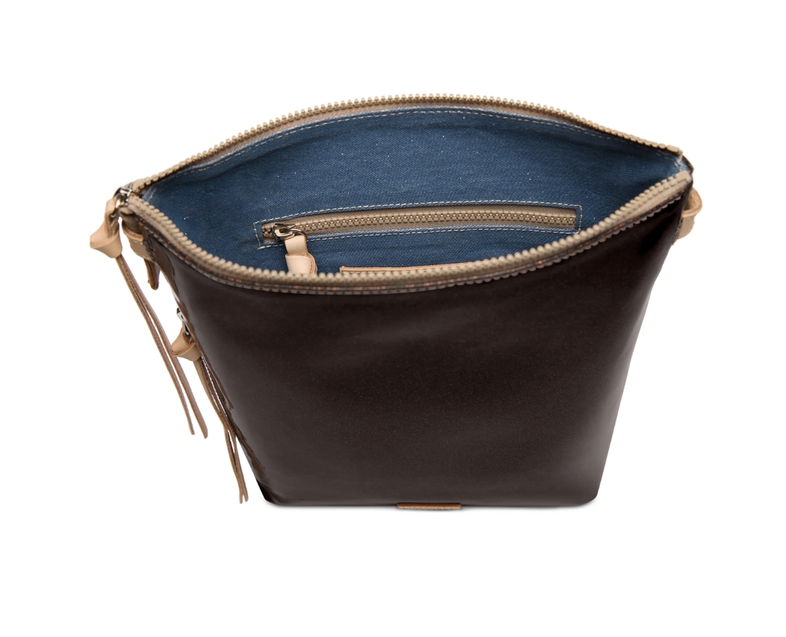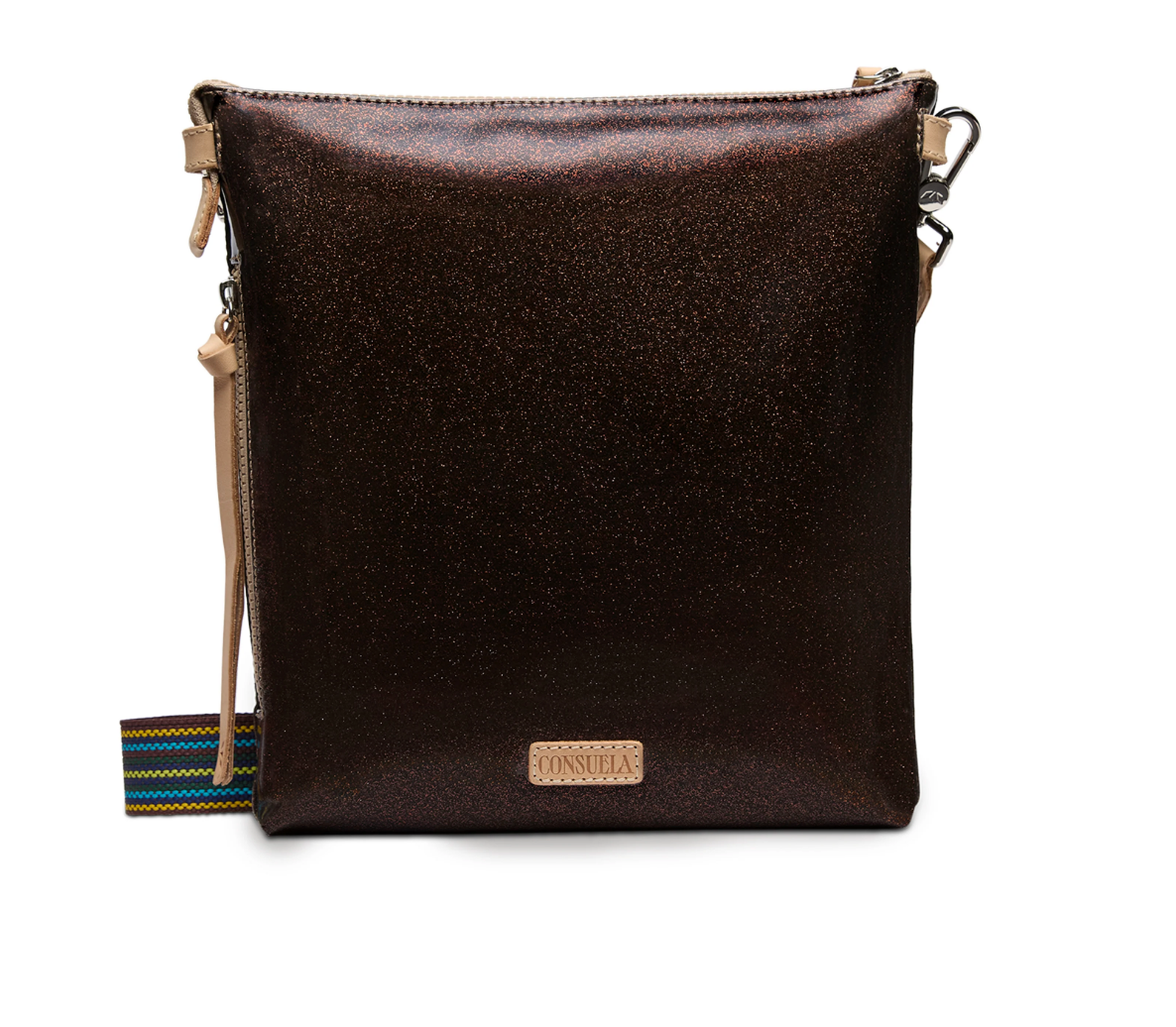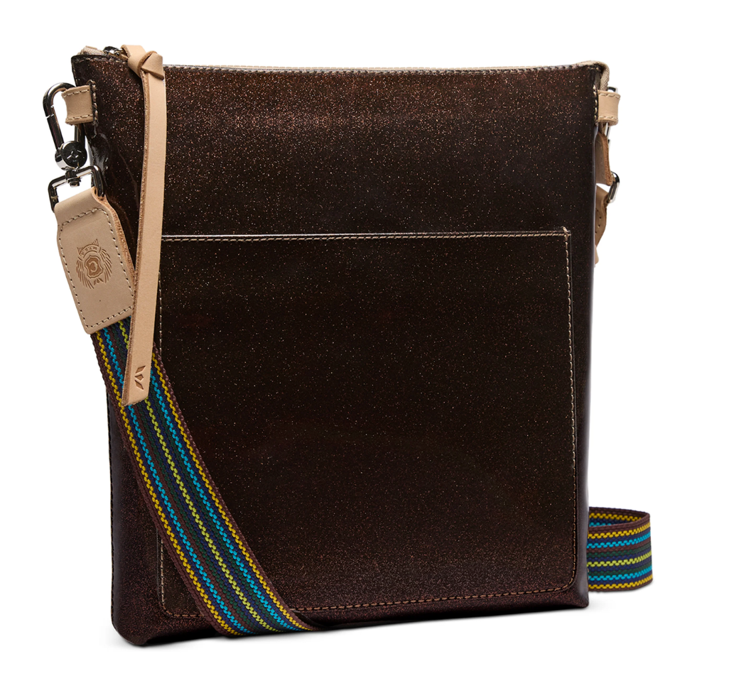 Our new, vertical crossbody has an extra front slip picket and a side zip pocket to streamline your busy life in style. Zip it up and go!