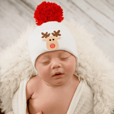 • Reindeer Pom Pom Newborn Hospital Hat for Christmas