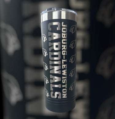 Show off your Cardinal pride with this sleek engraved Joburg-Lewiston tumbler! Featuring "Joburg-Lewiston CARDINALS" down the center and Cardinal heads engraved all around, this tumbler is the perfect way to stay hydrated in style.