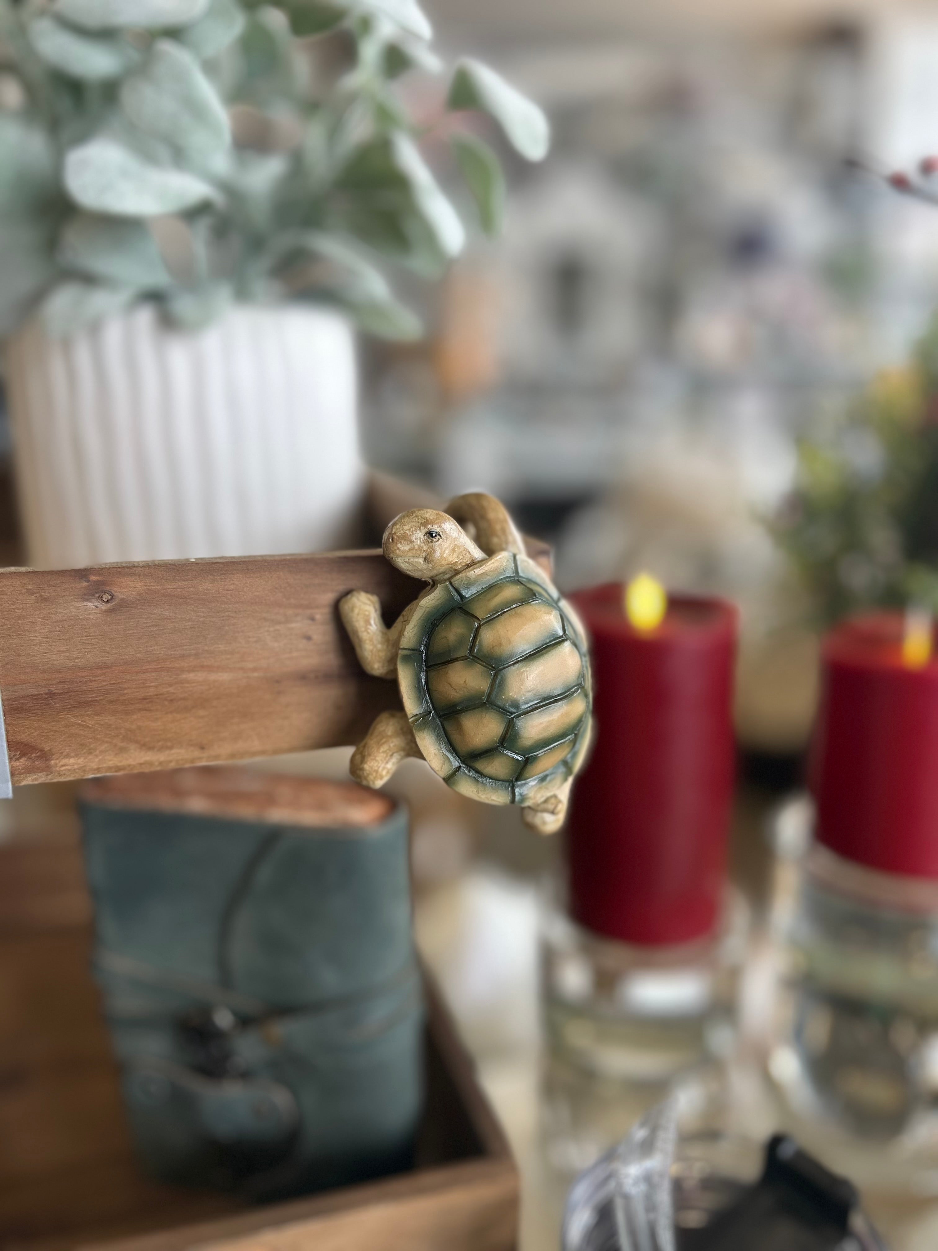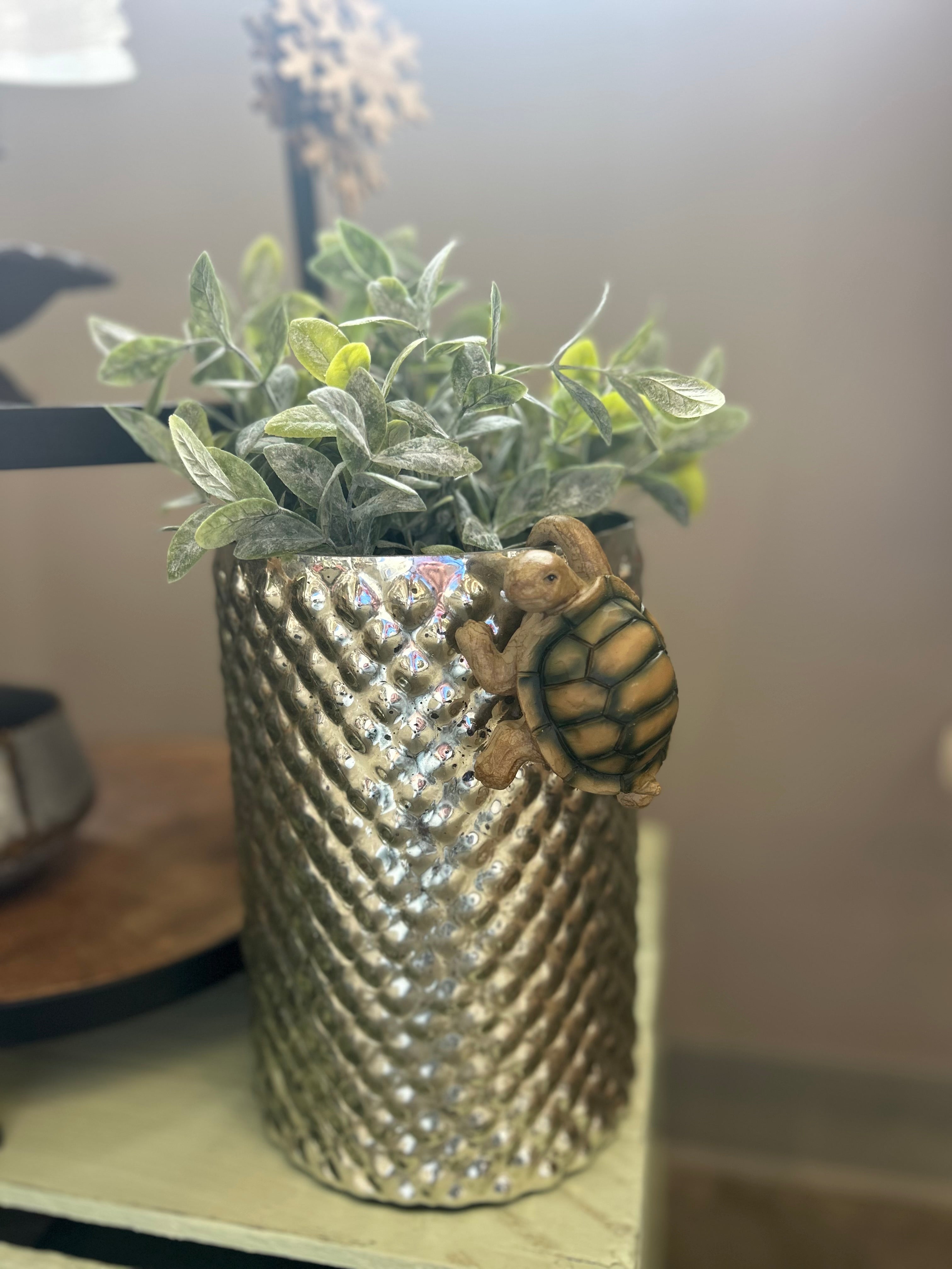 Bring a little charm to your space with this adorable climbing turtle! Made from durable resin, this tiny turtle is designed to perch right on the edge of flower pots, baskets, shelves, and trays. Making it look like he’s slowly climbing his way into your home.