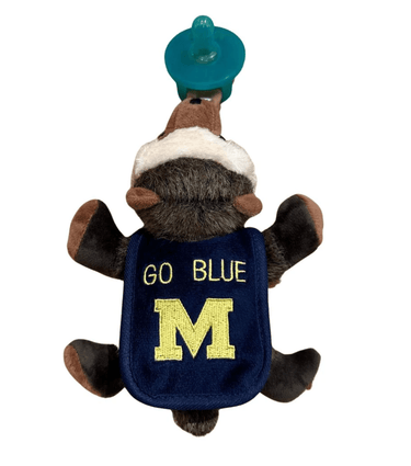 Pacifier is recommended for newborns and/or babies without teeth and is not recommended for teething. The plush product is great for all ages! Measures 6.5" L x 4" W. Imported.
